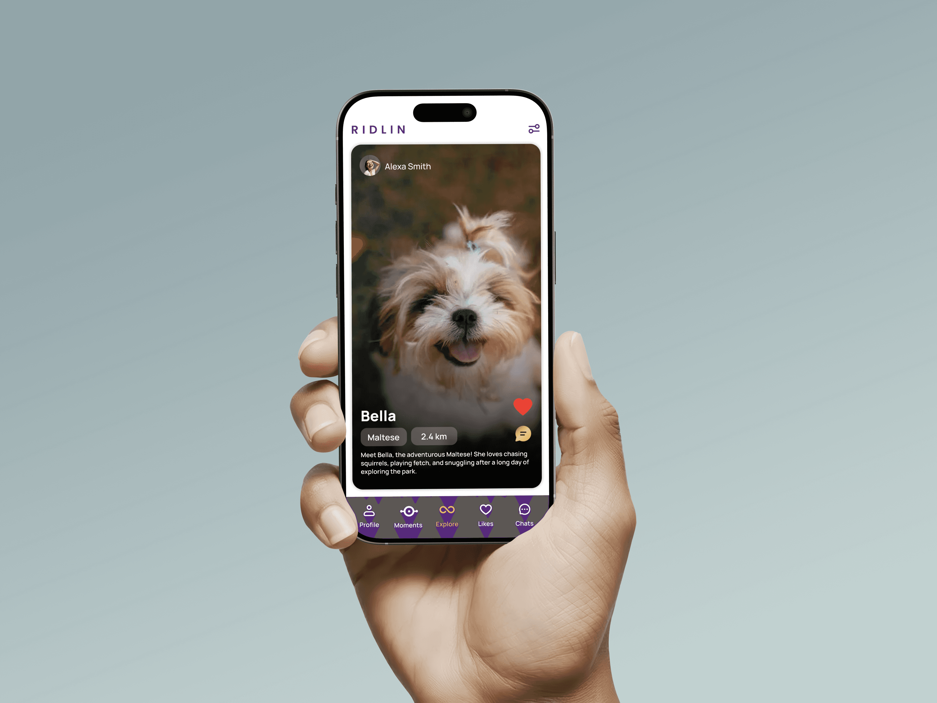 Designed RIDLIN, a user-centric social media app with a visually appealing, seamless interface .